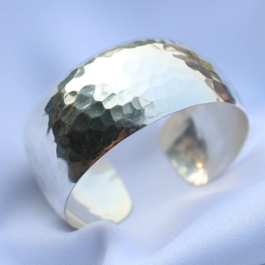 1 1/4" Hammered Pure Silver Cuff
